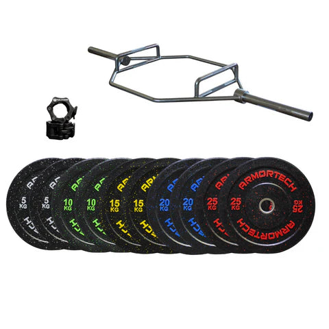 125kg Crumb Bumper & Hex Trap Barbell Package