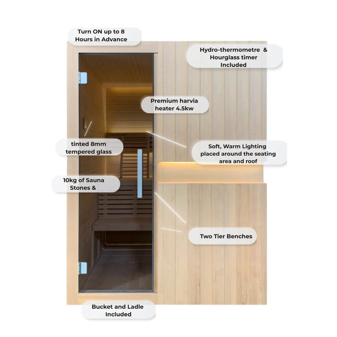 - 2-Person Saunas: Ideal for solo sessions or intimate gatherings.