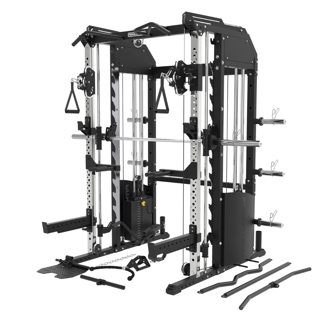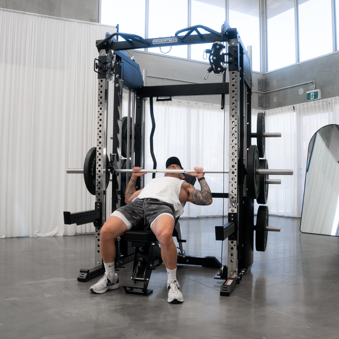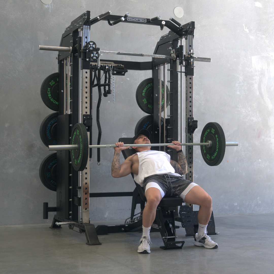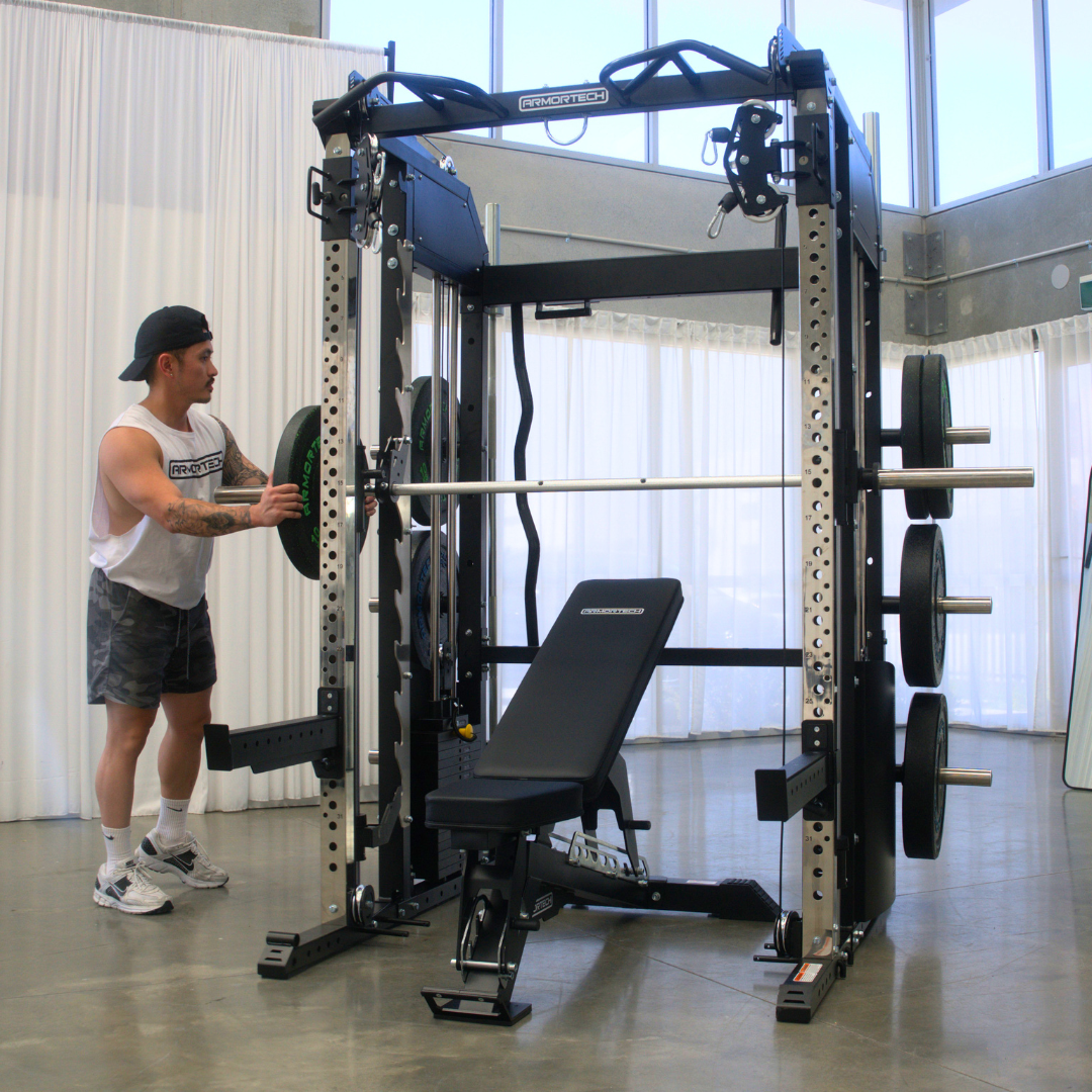 Smith machines are a great addition to any gym. These machines have all you need for a complete work out of your chest, back and arms, combined with the peace of mind of knowing you don’t need a spotter to push yourself and get the most out of a complete full body workout.
