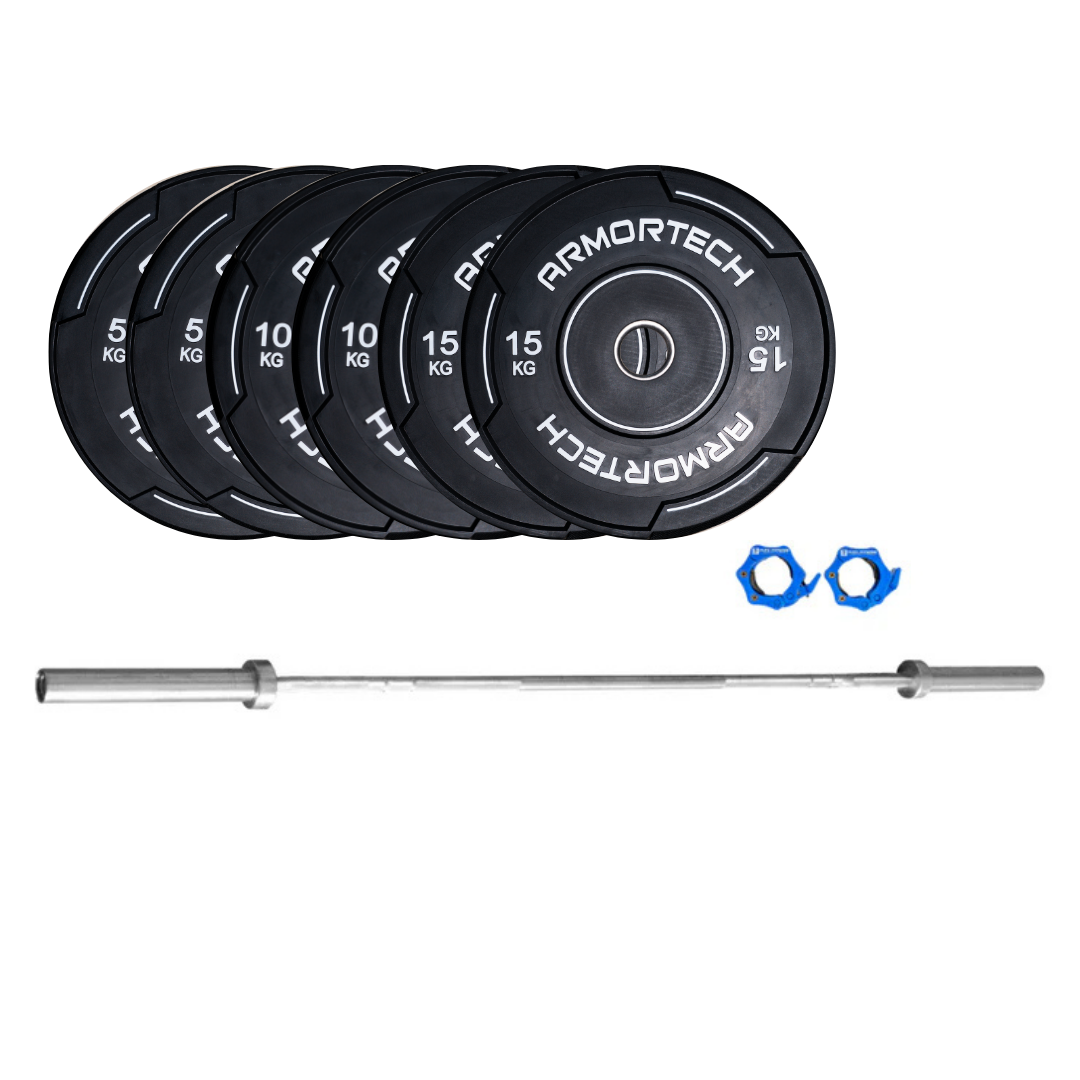 Armortech Black Bumper Plates have been a cornerstone of training for over a decade, trusted in both home gyms and commercial facilities for Olympic lifting, powerlifting, functional training and strength work. Introducing the V3 model, now upgraded with a sleek white inner ring and two new features including a contoured edge for easy grip and an angled indent for effortless pick up when flat on the floor. Rigorously drop tested and engineered for durability, these premium rubber plates feature stainless steel inserts for a secure Olympic bar fit, controlled dead bounce for improved safety, and impact absorption that helps protect both equipment and floors while remaining highly affordable. With a sharp black finish and embossed white lettering, they deliver consistent and reliable performance session after session.
