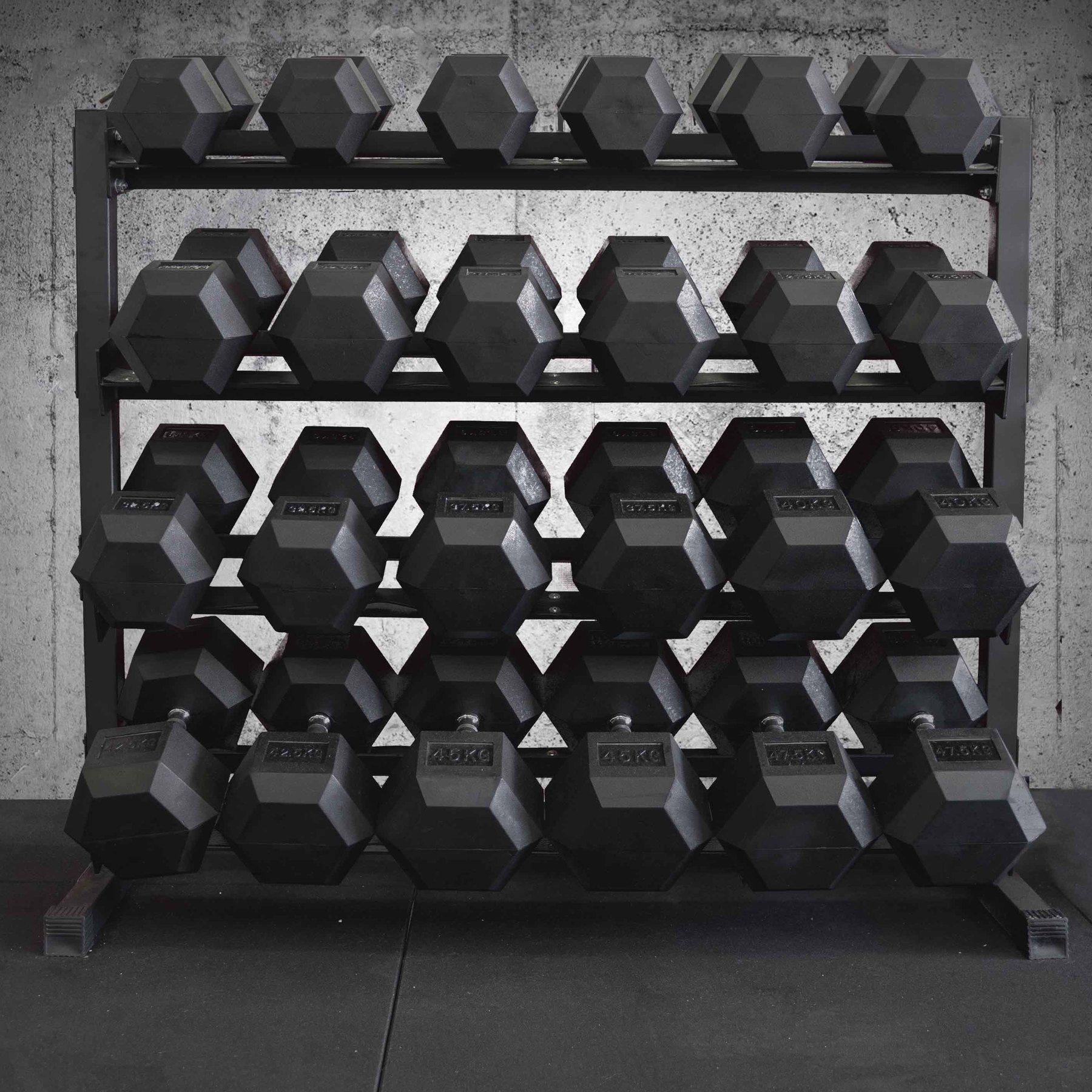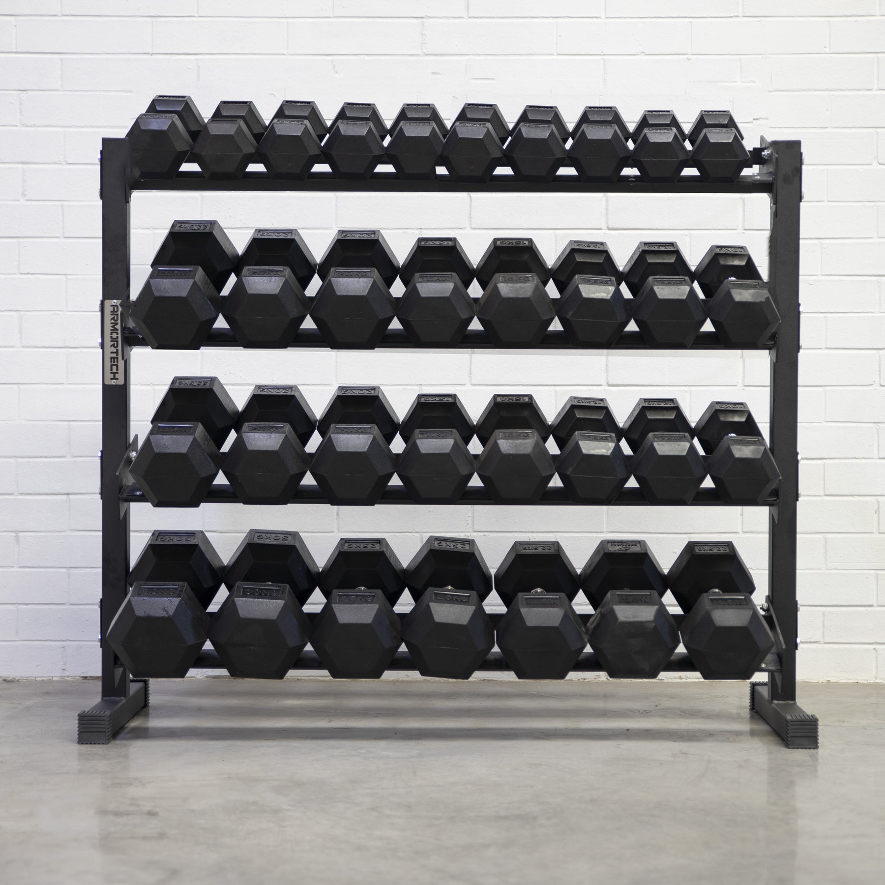The Armortech 4 Tier Dumbbell Rack offers a strong & reliable storage option for your dumbbells. A strong and heavy frame that is capable of holding a complete set of Hex Dumbbells (5-35 kg), with room to spare!