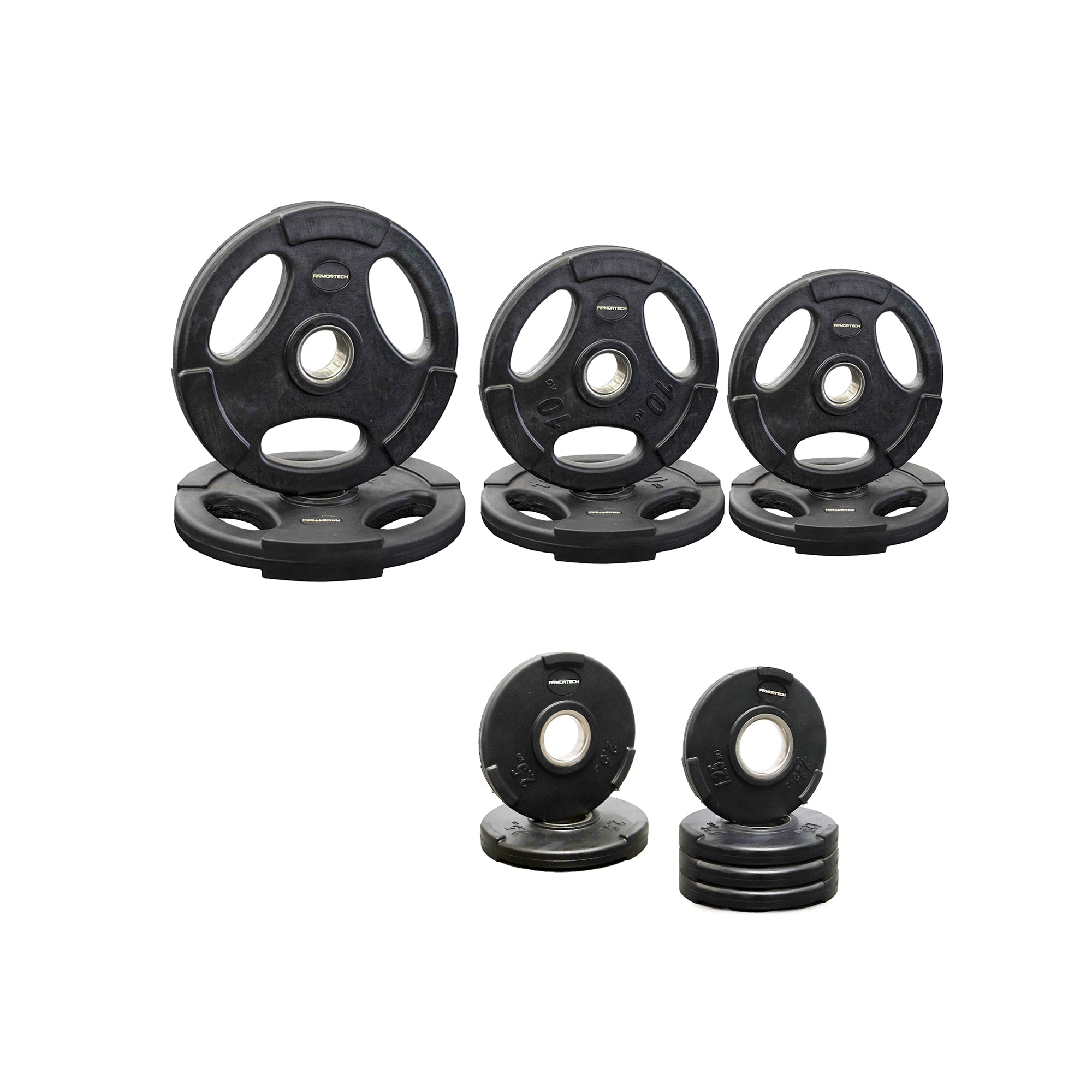 4 x 1.25kg, 2 x 2.5kg, 2 x 5kg, 2 x 10kg, 2 x 20kg