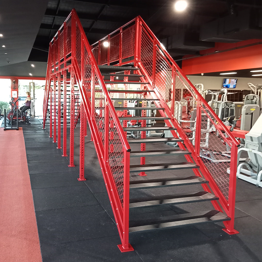 The Armortech FS6C STAIRCASE RIG is a versatile and durable piece of equipment that combines a staircase for cardio and endurance training with multiple squat racks for strength and functional workouts.