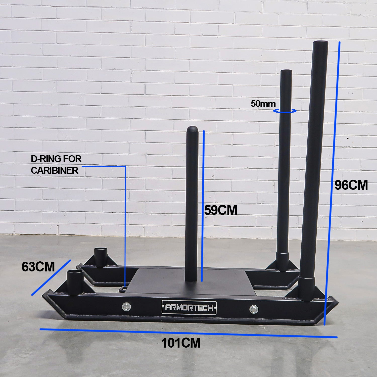 The Armortech HD Dog Sled is perfect for commercial gyms and strength and conditioning studios. Heavy duty, solid steel construction, this Dog Sled is reliable, tough and compact! Versatile for functional trainer; for push, pull and speed training on almost every surface.