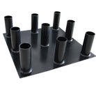 The Armortech Square Bar Holder is the perfect solution if you are limited for space and have barbells laying on the ground. The square bar holder helps you keep your workout area clear and tidy, and is a great solution to store your barbells on. Can hold up to nine Olympic barbells at once, with a thick steel base plate measuring 50x50cm - which makes this bar holder super stable. The cylinder that hold the bars measure 15cm high x 55mm wide, making the holder perfect to hold any bar - from your Hex bar, Axle bar, Log, etc. the list is endless.