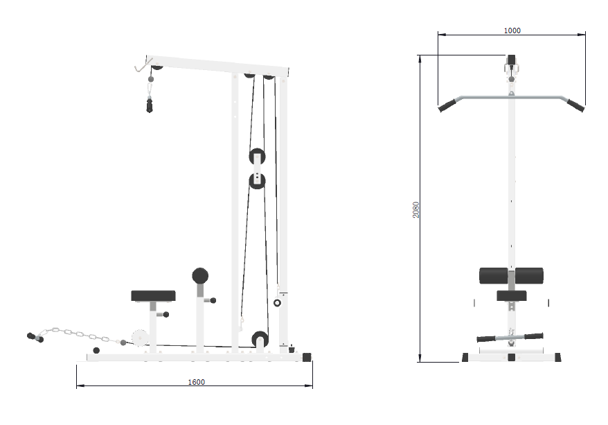Cable ratio: Lat pulldown 1:1, Low row 2:1
