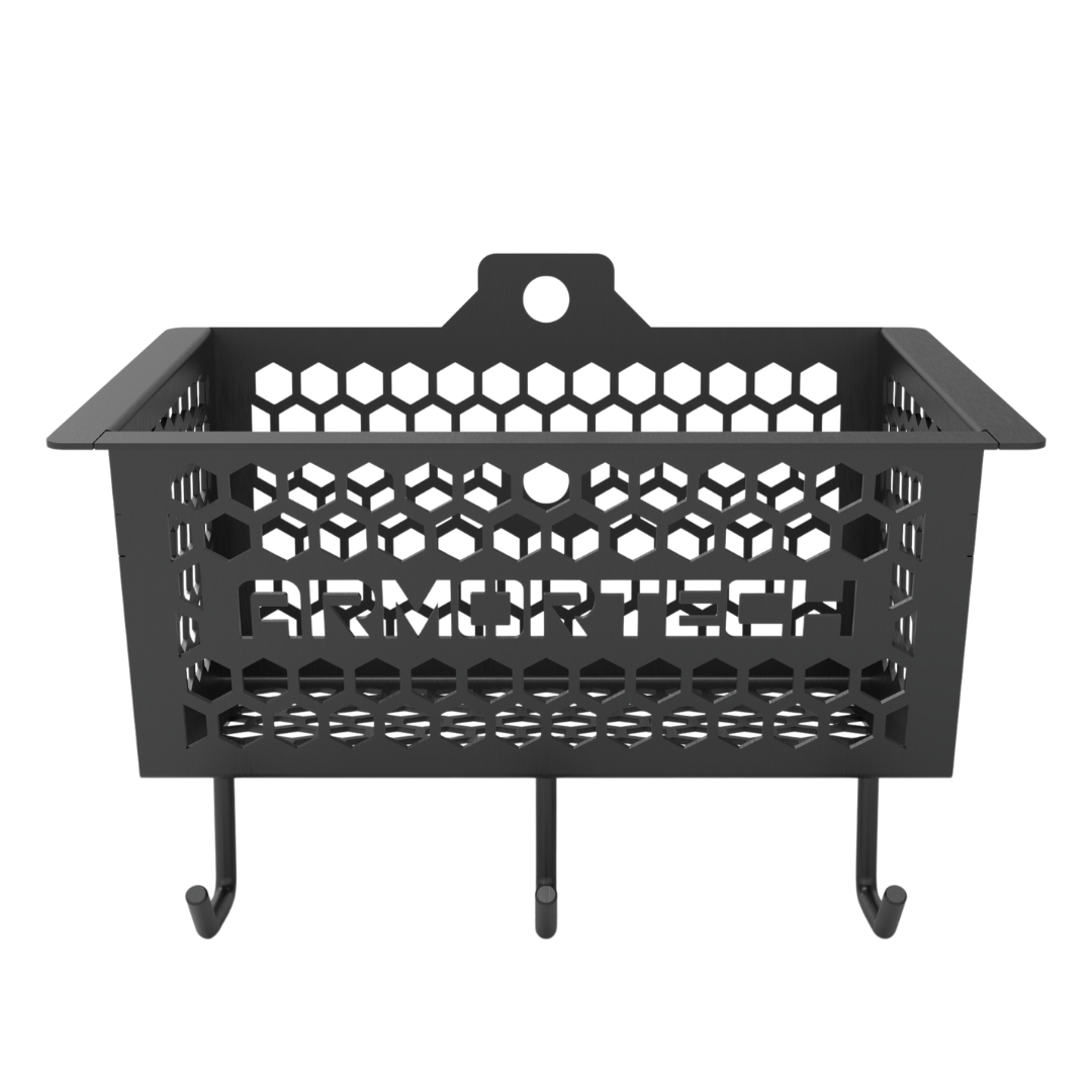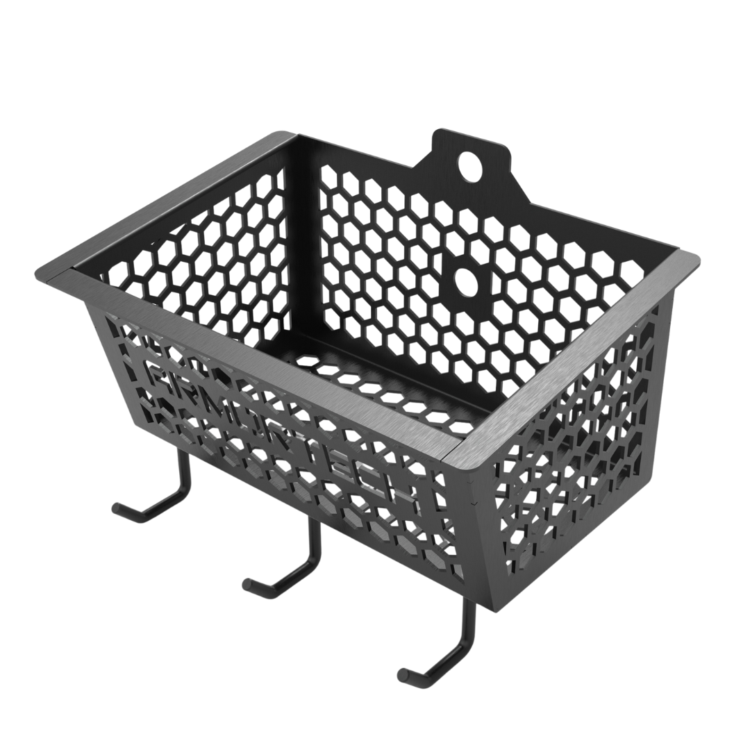 Compatible with X Series uprights and commercial storage uprights. The precision-cut holes are designed to minimise dust and debris build-up, keeping your equipment clean and ready for use. Features three front hooks for convenient storage of accessories such as resistance bands, wrist wraps, and cable attachments.