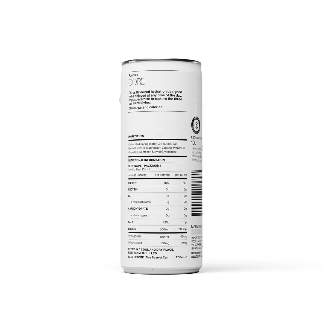 A 250ml carbonated hydration beverage crafted by sports nutritionists, delivering zero sugar and zero calories. With a precise blend of sodium, potassium, and magnesium, it’s designed to optimise hydration, support electrolyte balance, and enhance both mental and physical performance.