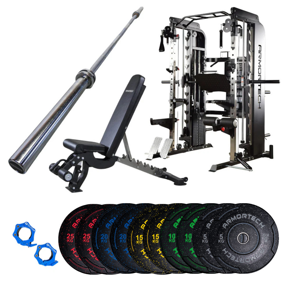 Maximize your workout potential with the Armortech F70 Max – the ultimate all-in-one home gym solution. Combining a functional trainer, half rack, and Smith machine into a compact design, this versatile powerhouse delivers a comprehensive workout experience. Crafted from premium, hard-wearing materials, the F70 Max is built to last and withstand even the most intense training sessions. Experience the perfect blend of quality, affordability, and functionality. Don't settle for less – elevate your fitness journey with the Armortech F70 Max today.