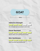 Engineered for comfort and reliability. GOAT’s small nose strips combine safe, natural latex-free materials with a gentle hypoallergenic medical adhesive, perfect for those with sensitive skin.