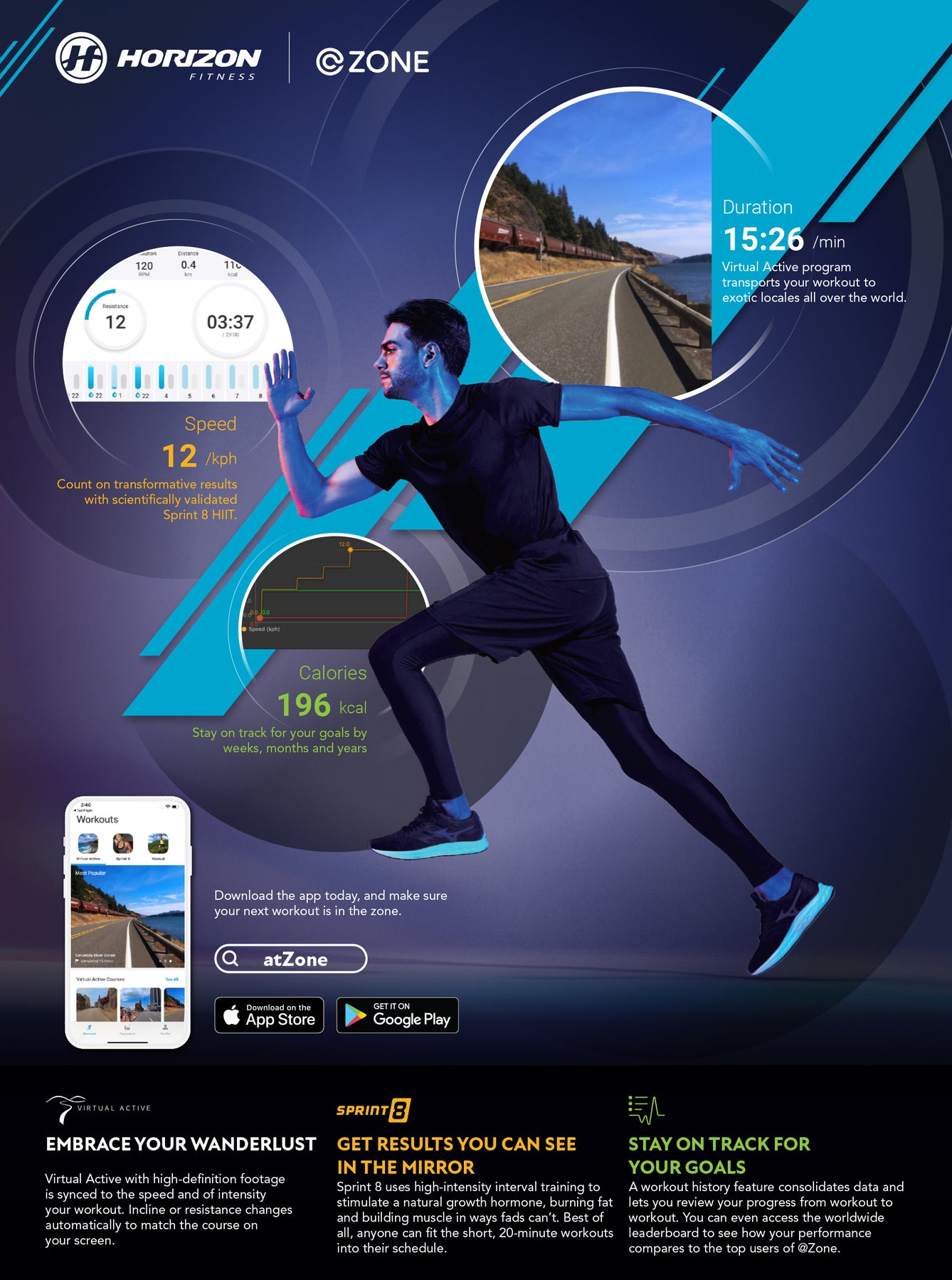 | PROGRAMS | 67 Programs including: Manual, Hill Climb x 10 levels, My First 5K (3 different workouts x 9 weeks), Fat Burn x 10 levels, Custom, Target Distance x 10 levels, Target Calories x 10 levels, Target Heart Rate, Custom Heart Rate, Sprint 8 x 20 levels |