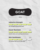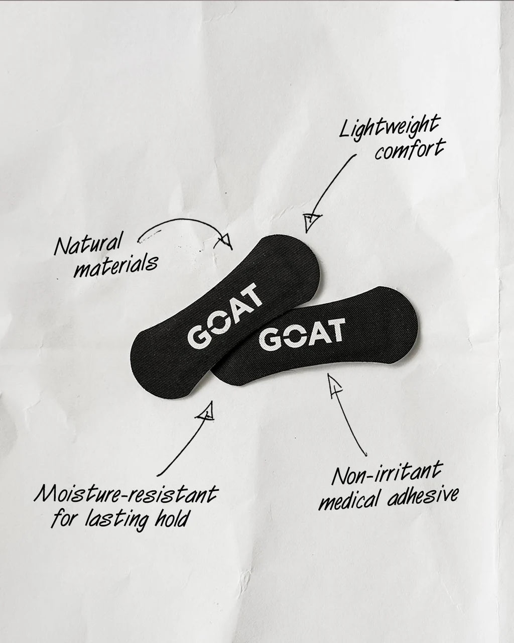 Engineered for comfort and performance, GOAT black nose strips combine safe, natural latex-free materials with a sweat-resistant hypoallergenic medical adhesive. They stay put during workouts while remaining comfortable on your skin.