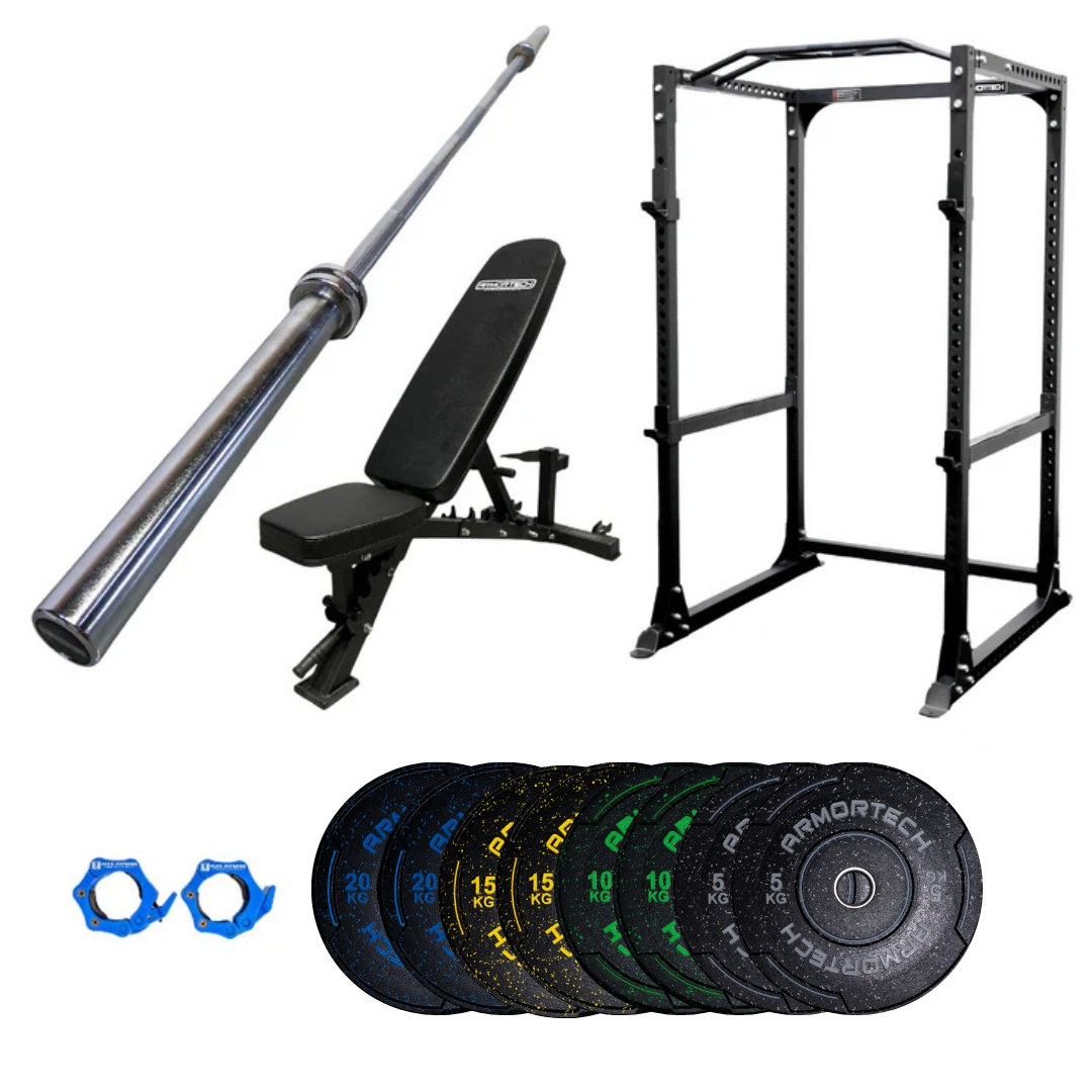 If you're serious about building strength and power, the Armortech Power Cage PC5 is your ideal choice. Whether it's for a home gym or a cost-effective power cage for your gym in a semi-commercial setting, this versatile power rack meets all your strength needs for up to 450kg weight rating. This package deal is for serious lifters that want a strong cage to perform all the compound lifts and exercises such as; squats, barbell rows, bench press, military press, pullups and more!