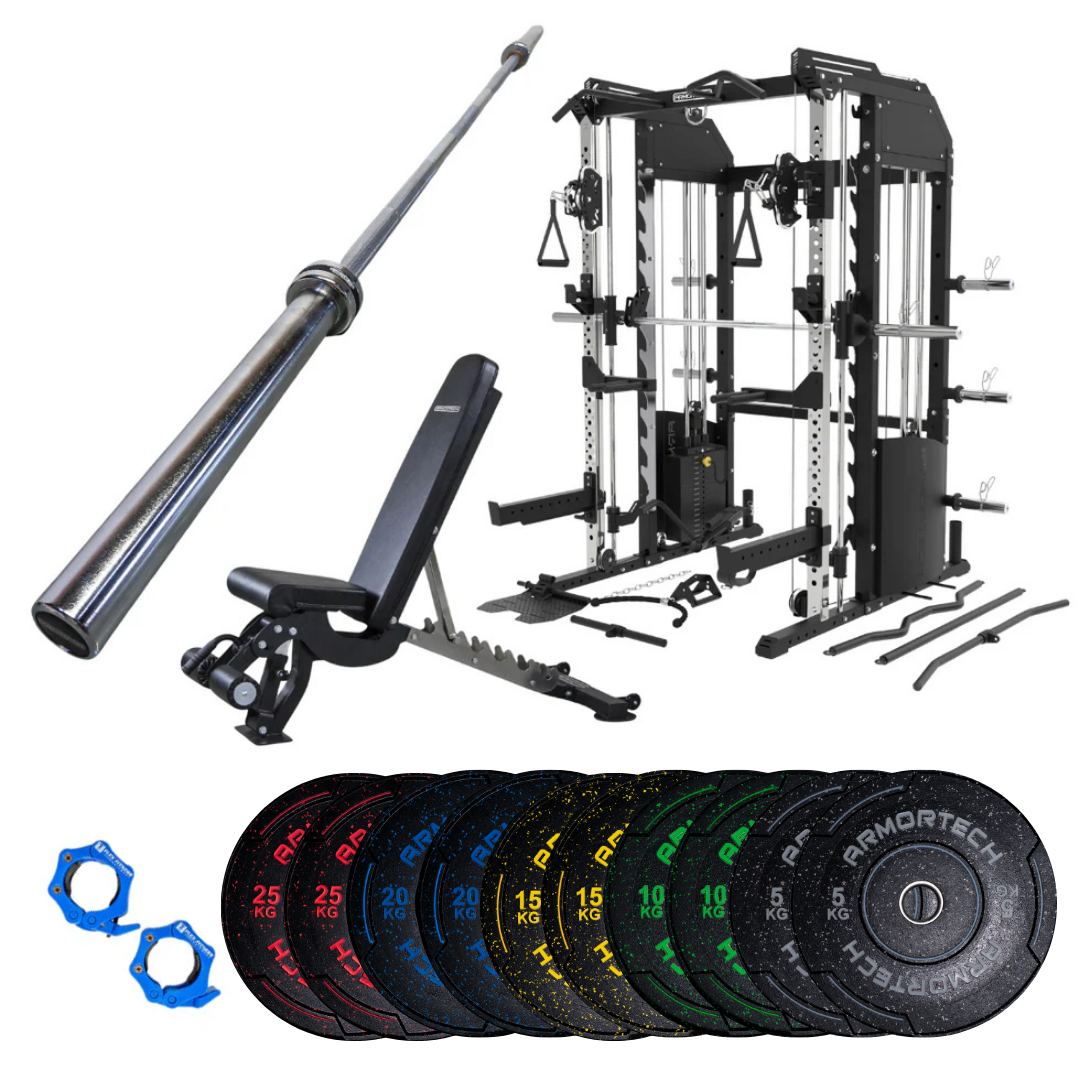 Unlock your full training potential with the Armortech PT100 All-In-One Trainer—a complete strength solution engineered for serious home gyms. Combining a 400kg-rated Smith Machine, dual 102kg weight stacks on a smooth functional trainer, and a full set of premium cable attachments, the PT100 delivers total-body strength, functional fitness, and maximum versatility in one compact, space-efficient unit.