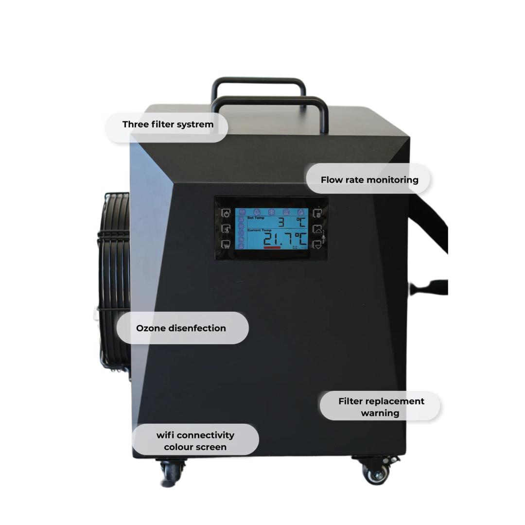 Imagine being able to control your ice bath from anywhere, anytime. With built-in WiFi and our intuitive Rejuvenex app, you hold the power in your hands. Set, adjust, and monitor the water temperature remotely to match your preferences and schedule, giving you a level of flexibility and personalisation unmatched in cold therapy.