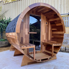 Rejuvenex Outdoor Cedar 6 Person Traditional Barrel Sauna With Porch