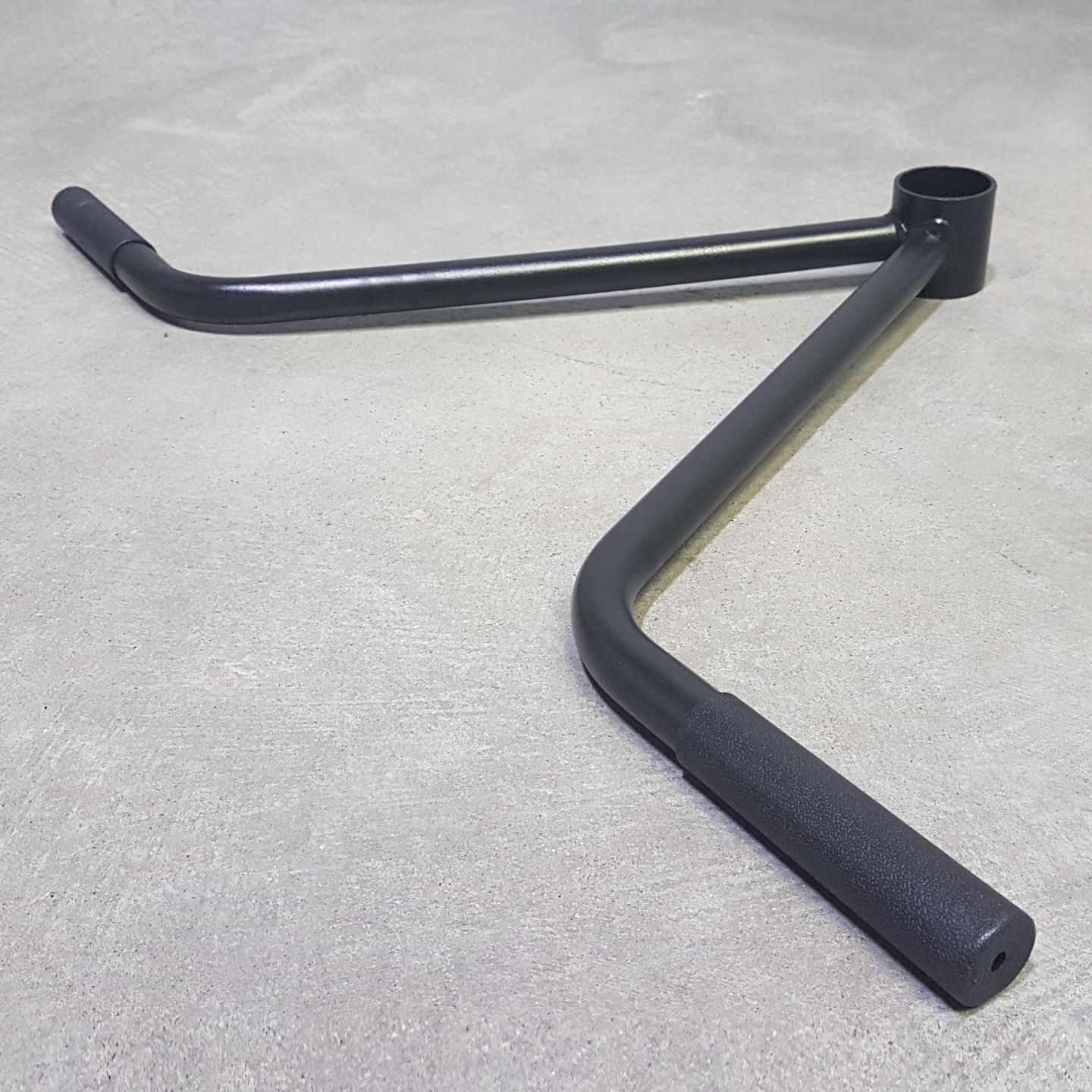 The wide grip, Torso Handle Attachment or T-Bar Handle is great for activating the upper back when doing rows. The unique v-shape allows for wider grip, to target the wide back muscles.